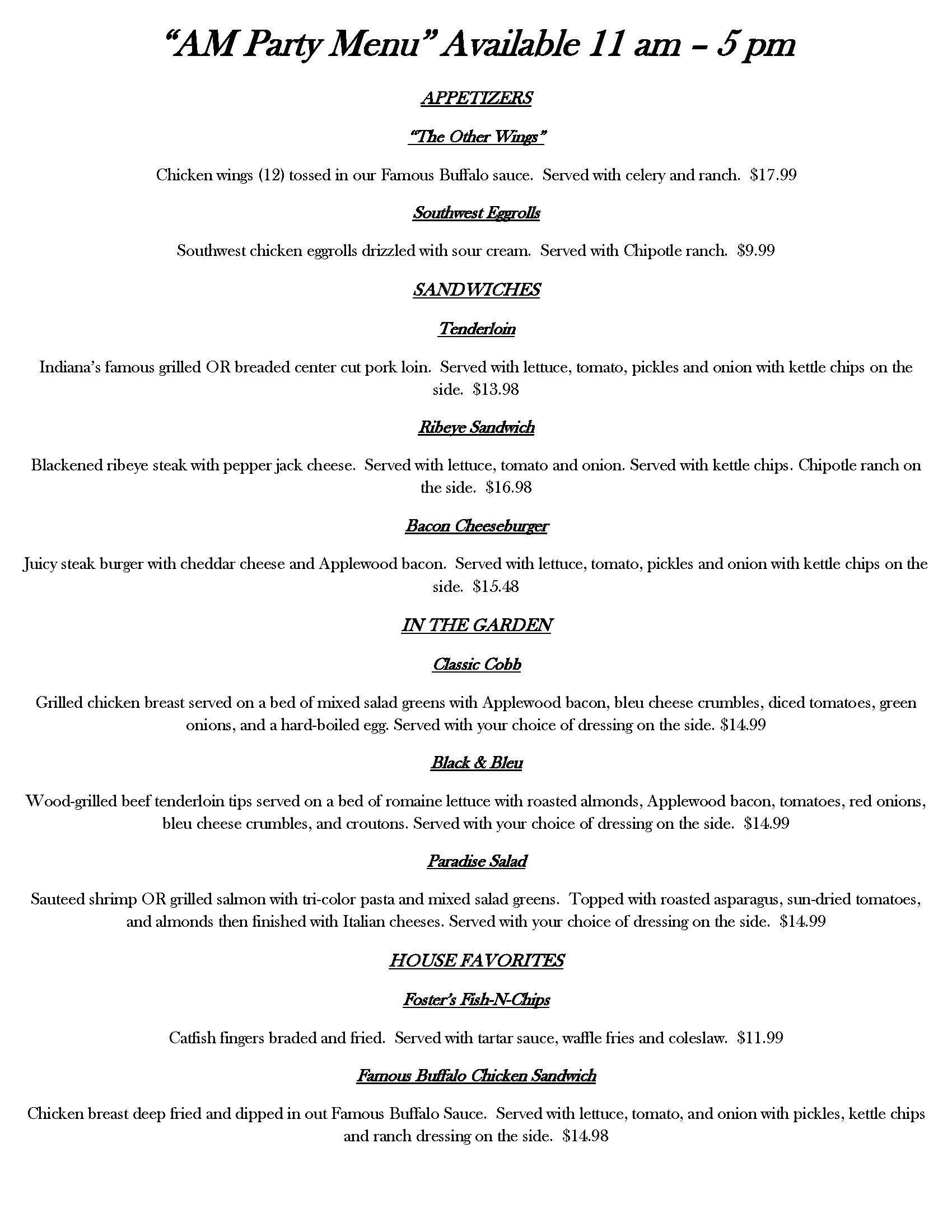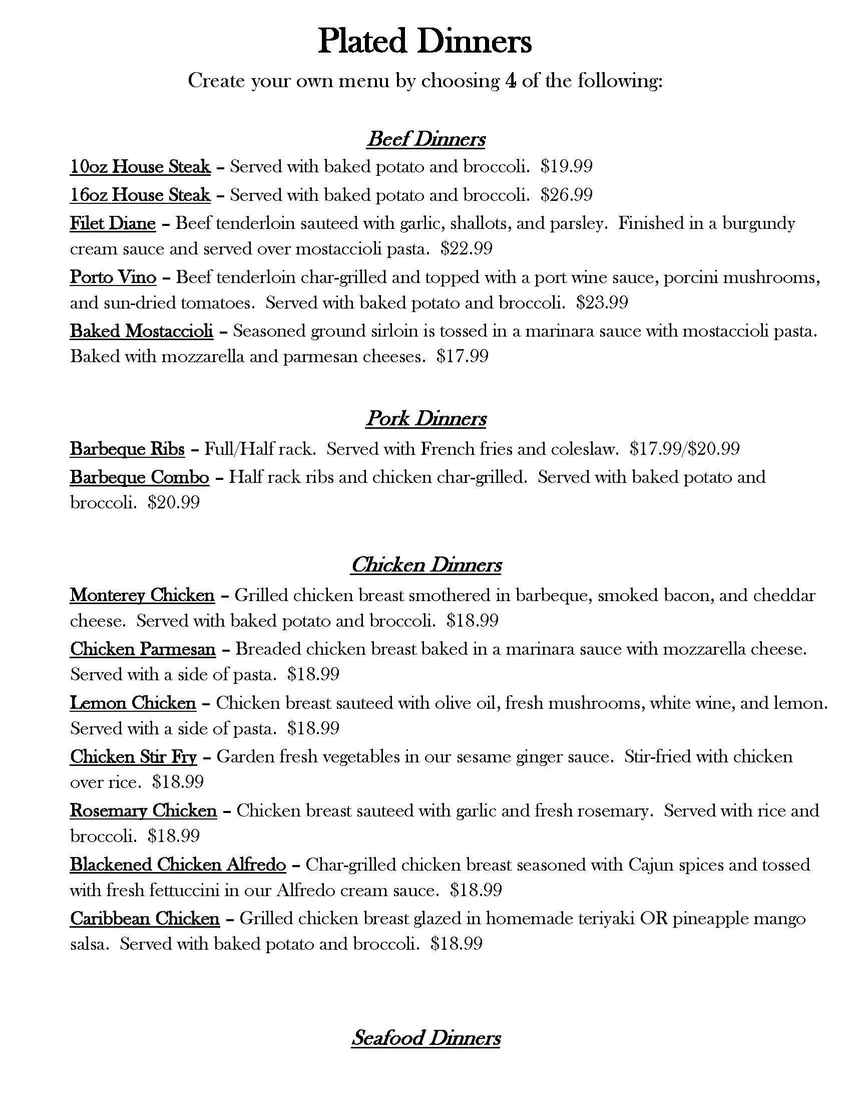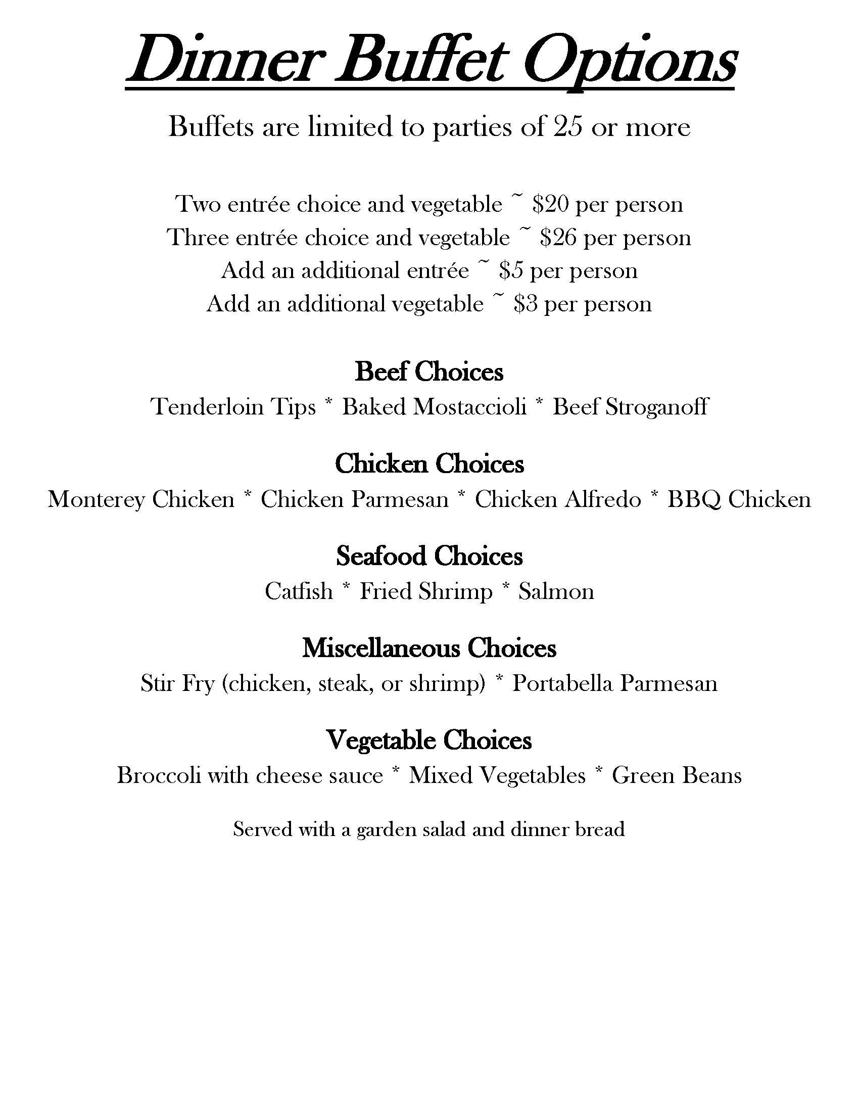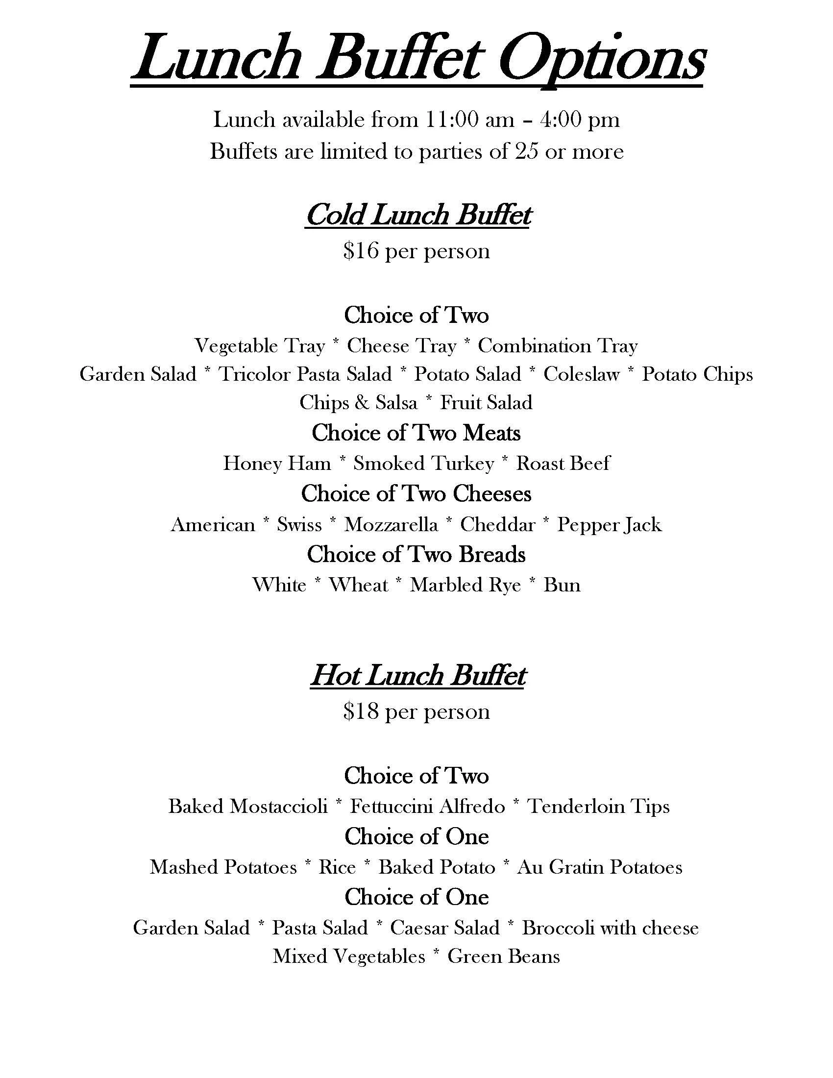 Any party of 25 guests or more requires a select menu.